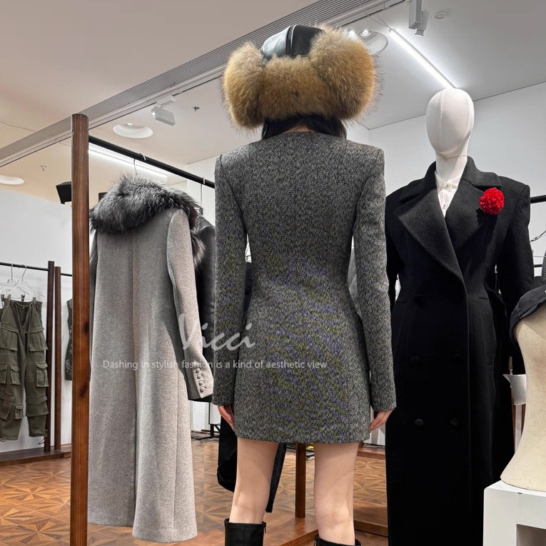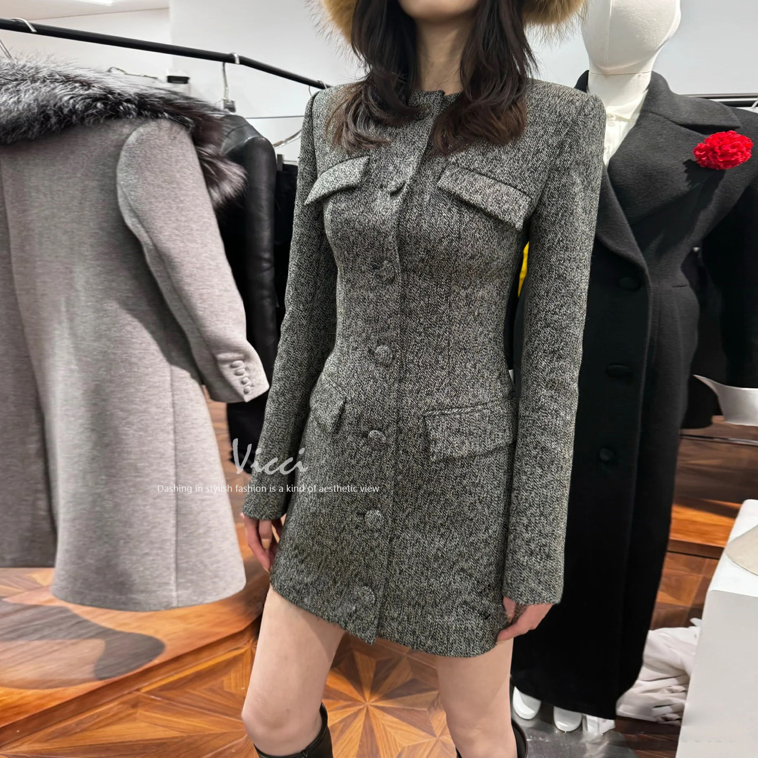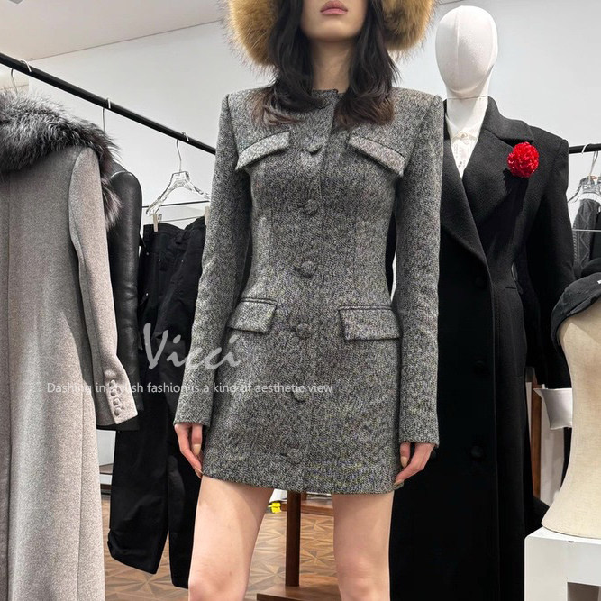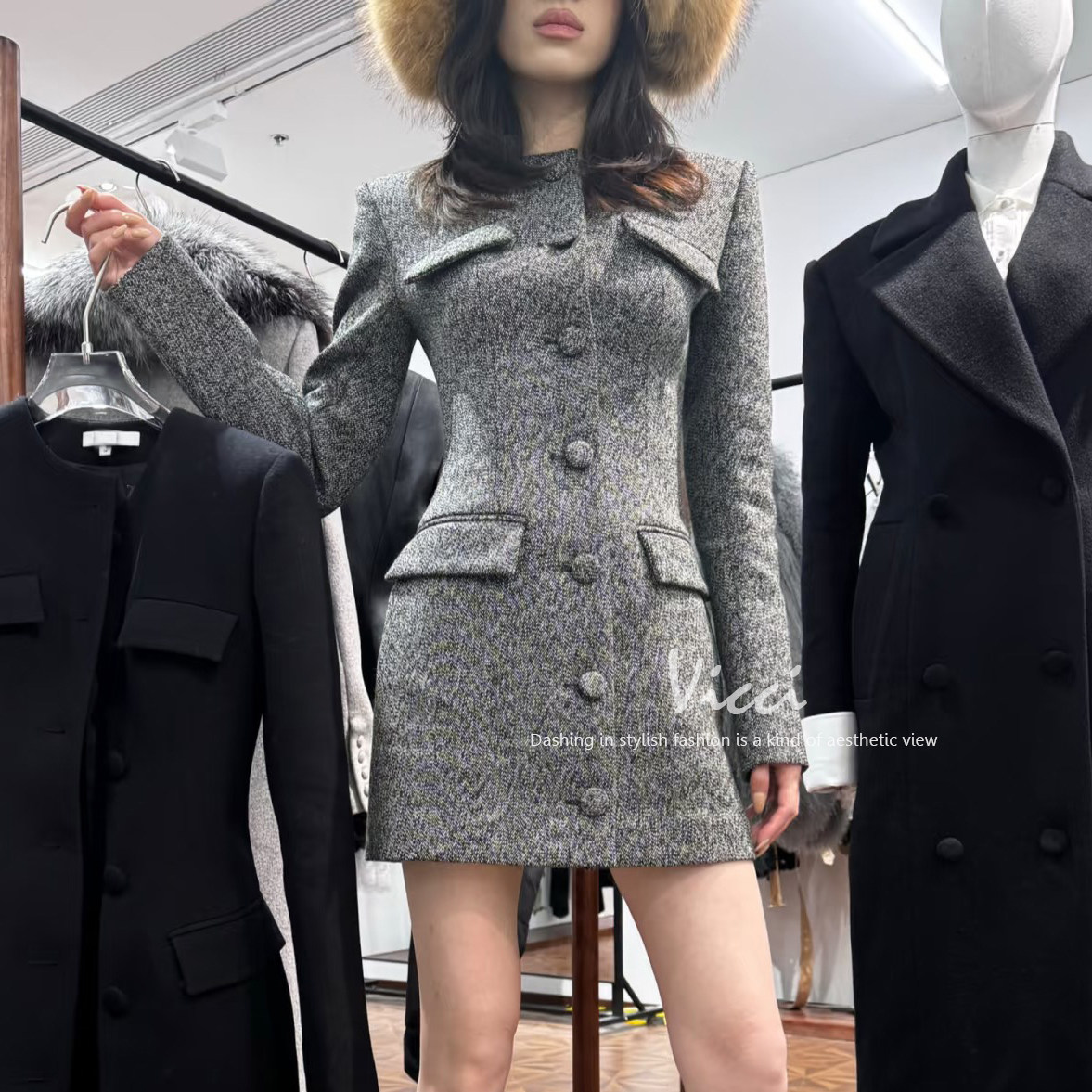 千金感名媛高级感小香风粗花呢外套女2025秋冬季修身单排扣连衣裙