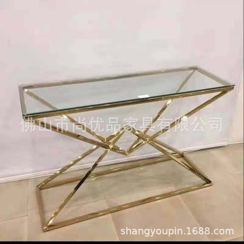 简约不锈钢玻璃沙发角几茶几客厅家具靠墙走廊装饰画过道玄关柜