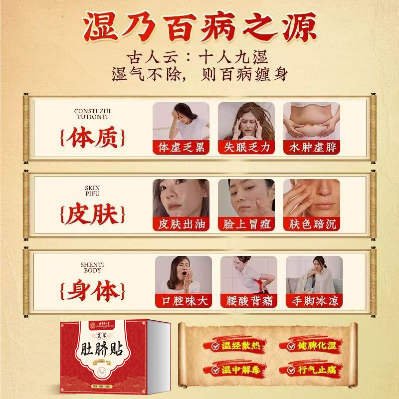上用艾草艾灸肚脐贴祛湿寒调理脾胃水肿油腻大肚子花椒艾绒湿气