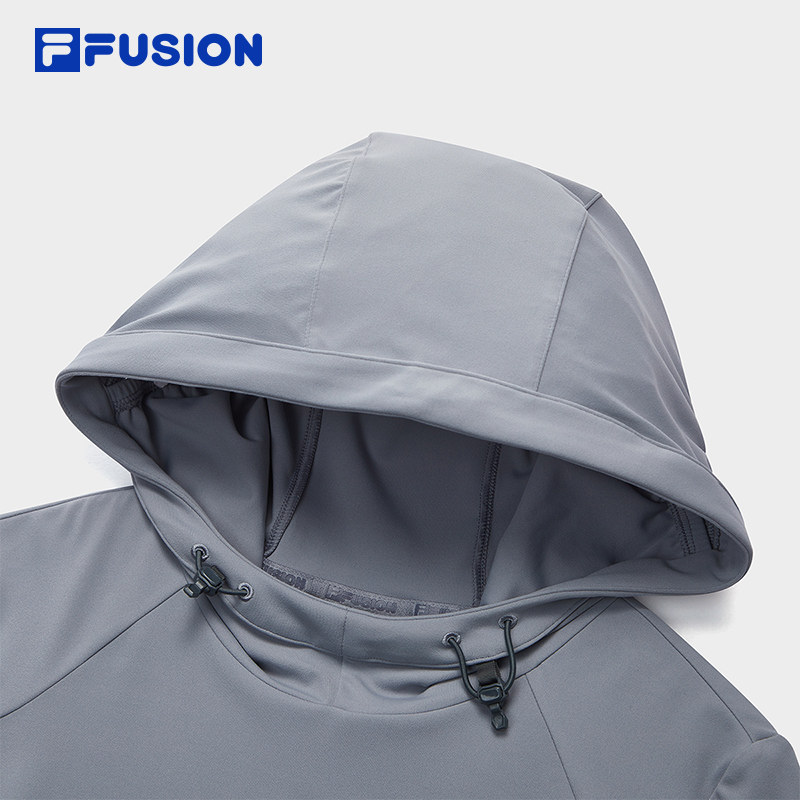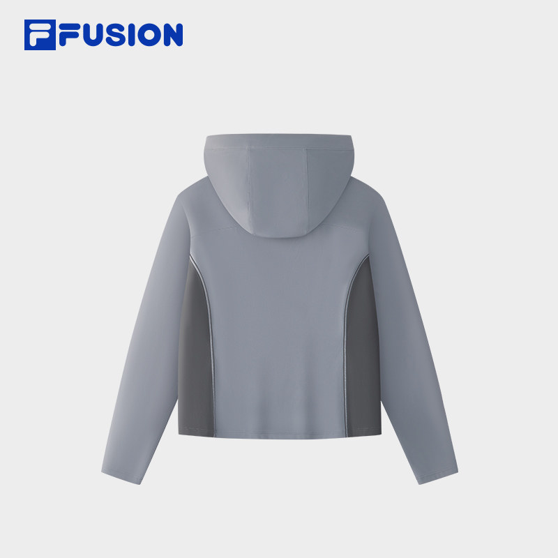 FILA FUSION斐乐潮牌女子针织连帽上衣2026春新款休闲拼色修身长T