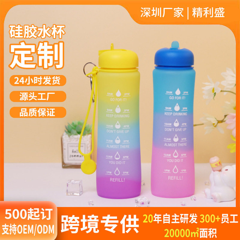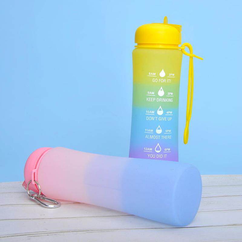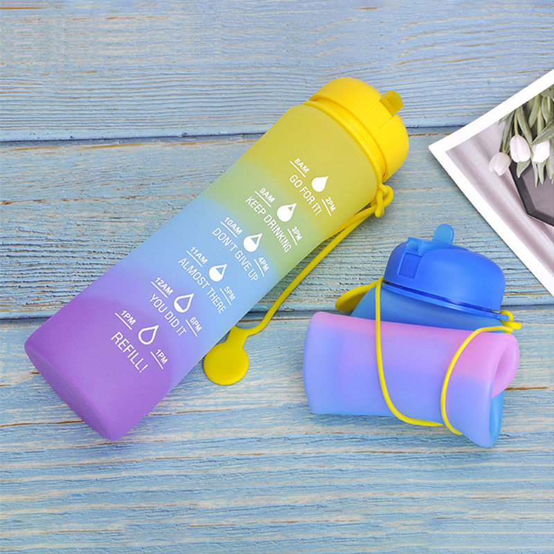 渐变色硅胶折叠水杯跑步健身户外运动便携水壶600ml骑行硅胶水瓶
