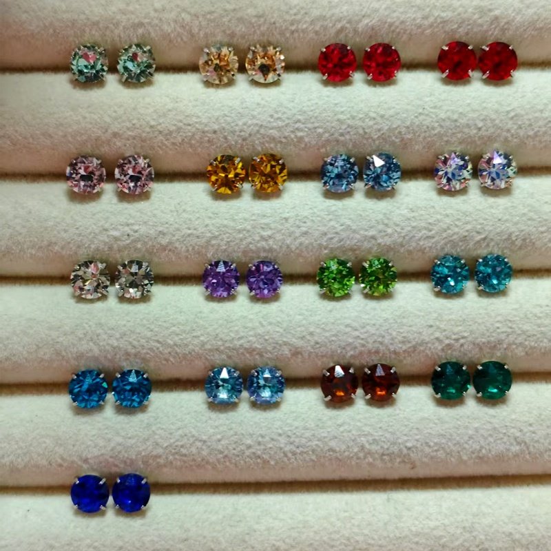 彩色猫眼石银针耳钉套装女夏日圆脸养耳洞耳环小巧精致高级感耳饰