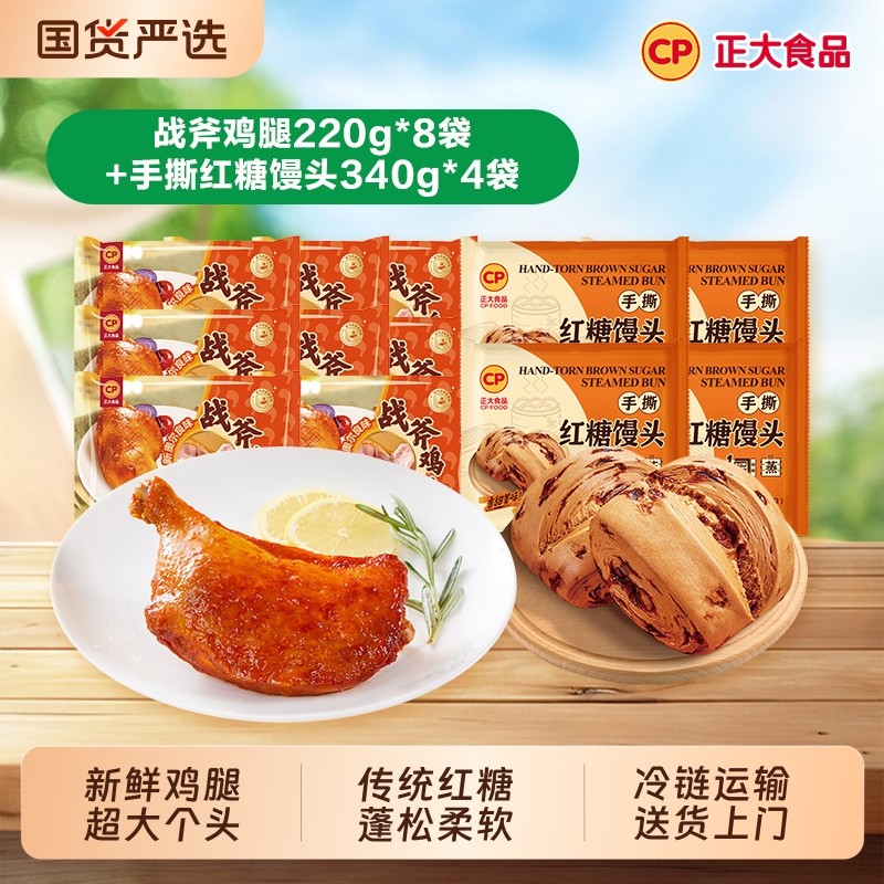 CP正大战斧鸡腿奥尔良味手撕红糖馒头大鸡腿空气炸锅半成品手枪腿