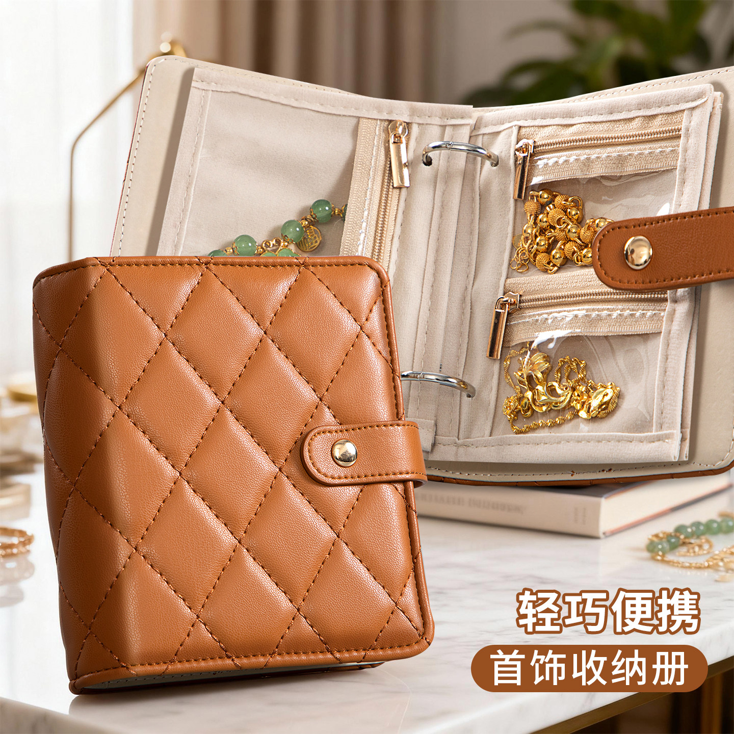 首饰收纳包袋旅行高级轻奢便携式小号活页黄金饰品收纳书防氧化耳环手链手镯戒指包精致珠宝首饰盒绒布礼物盒