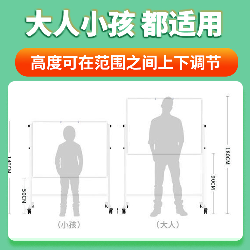 齐富3年0擦痕白板支架式升降白板移动家用儿童教学培训双面磁性小黑板记事看板留言办公可擦写翻转白板写字板