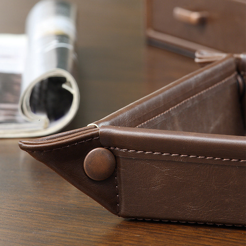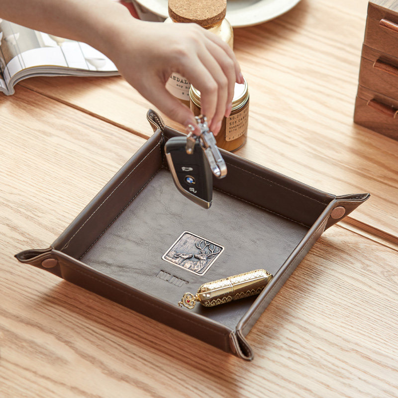 钥匙收纳盒美式复古门口玄关放钥匙收纳盘皮托盘桌面遥控器收纳盒