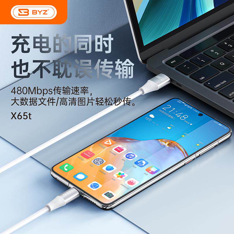 X65系列铝合金加粗软线闪充线Type-C/Lighing接口可选适用于iphone8-17华为荣耀小米手机充电数据线