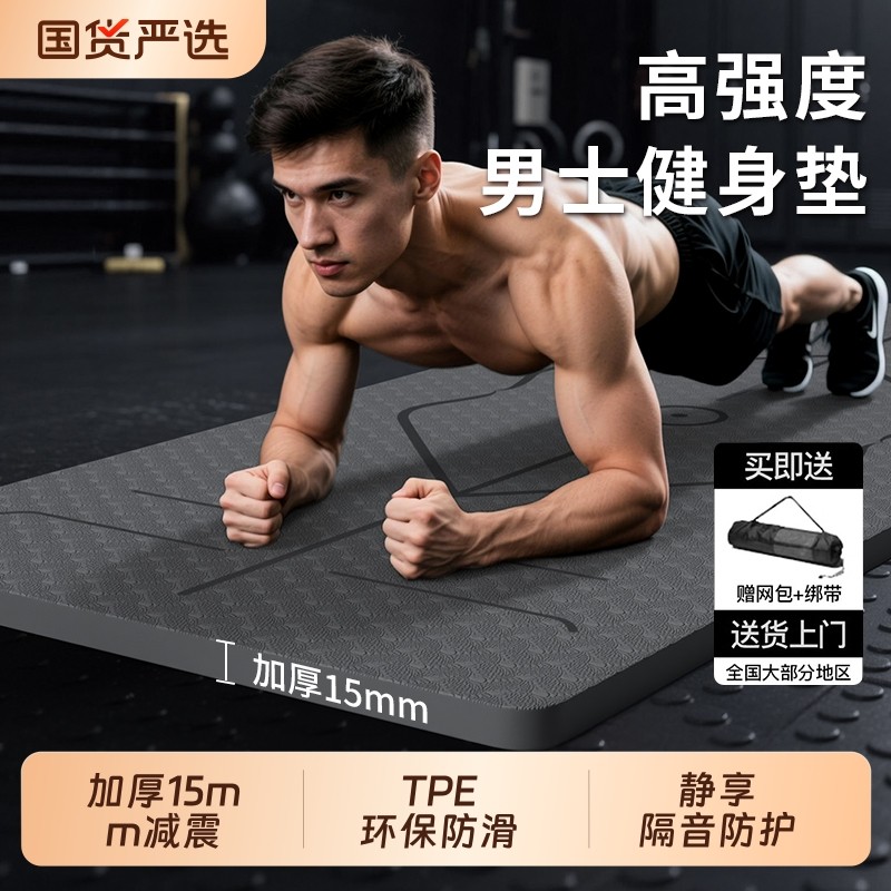 瑜伽垫男士健身家用防滑减震静音加大加宽加厚隔音运动锻炼地垫子