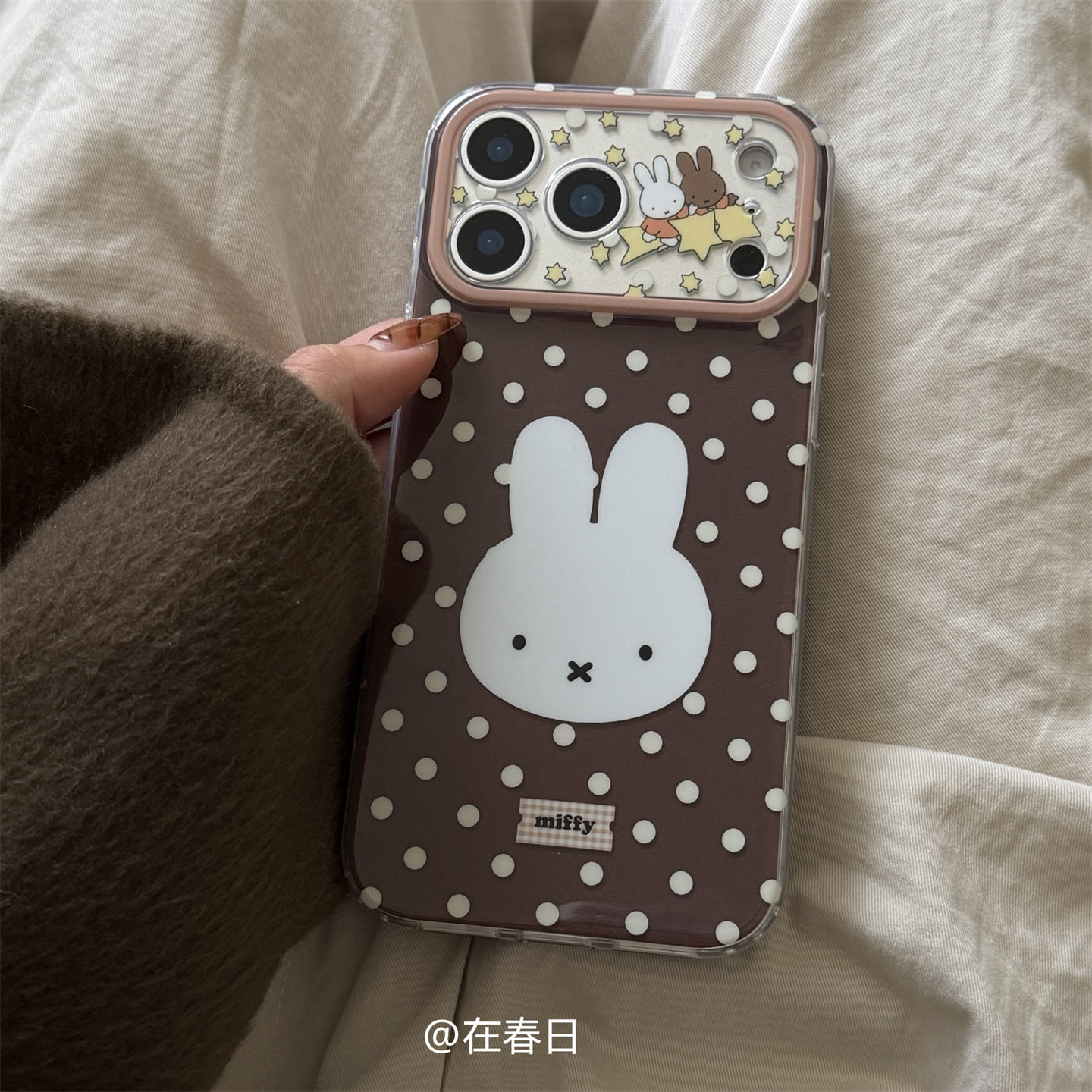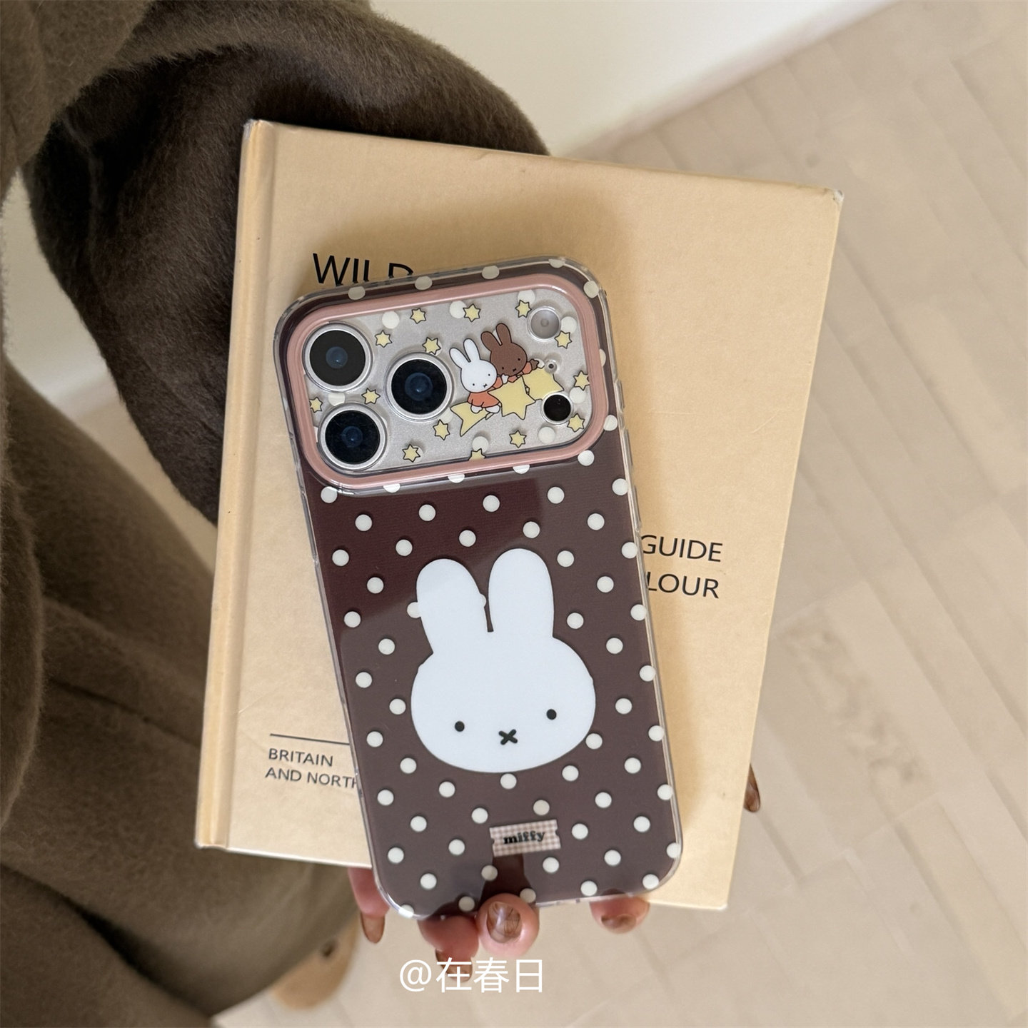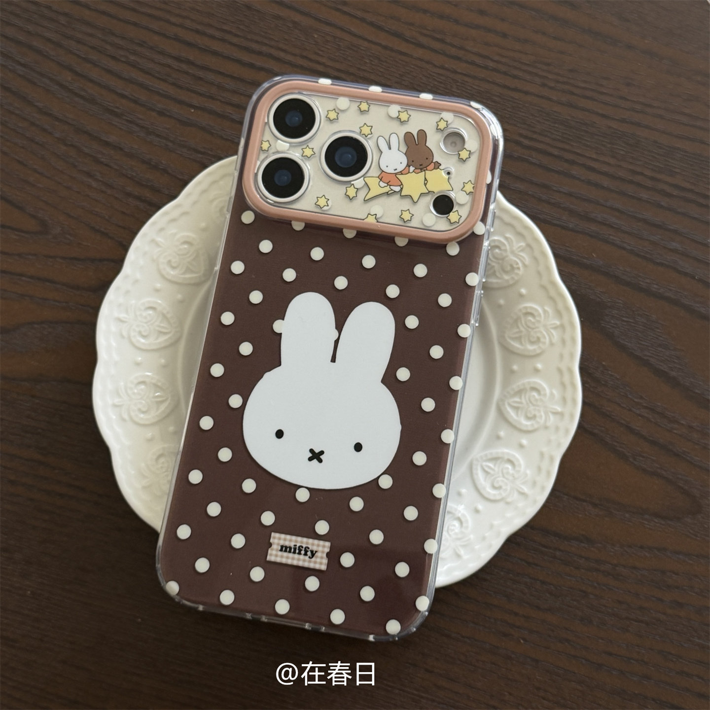 在春日韩系ins可爱棕色白波点米菲兔子手机壳适用iPhone17promax精孔16promax全包15pro女生14保护壳新款17
