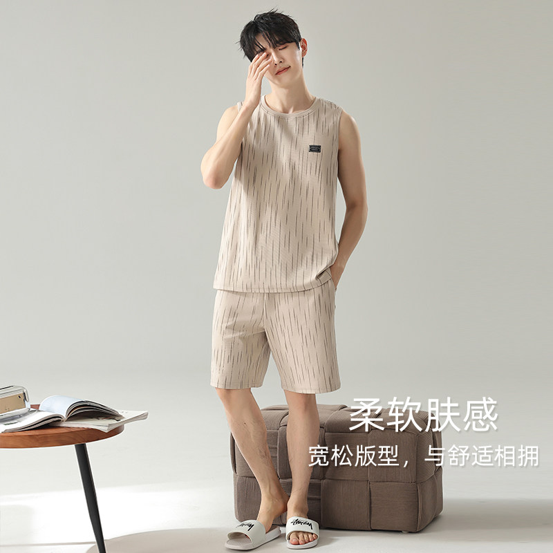 浪莎2025年新款睡衣男士夏季纯棉短袖长裤家居服男款夏天夏款套装