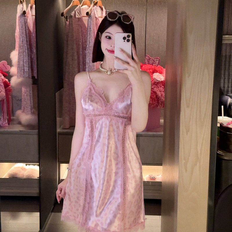 带胸垫性感睡衣女夏2025新款纯欲风冰丝蕾丝吊带裙睡裙高级感套装