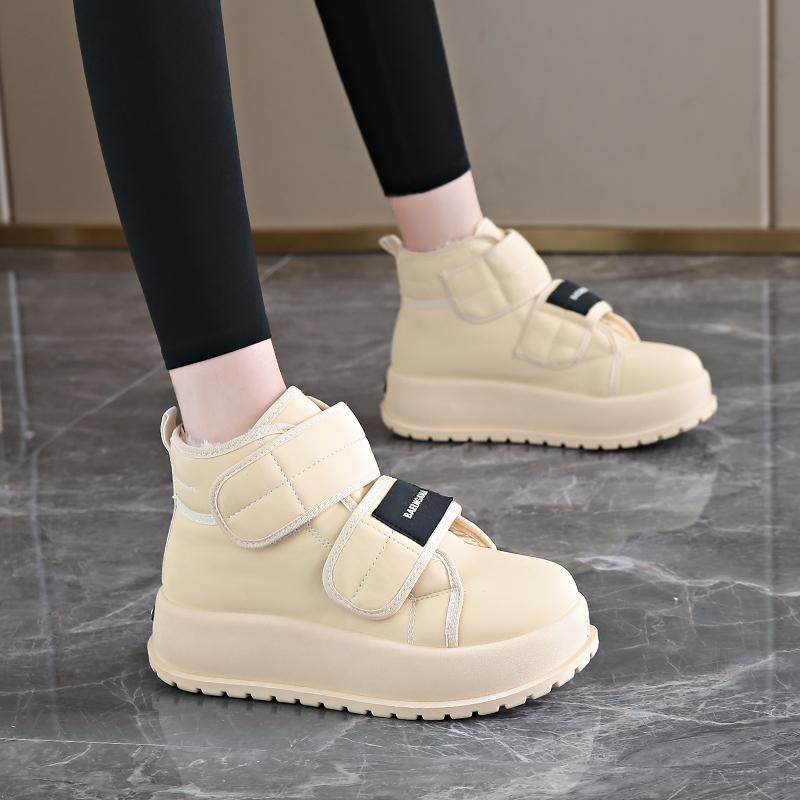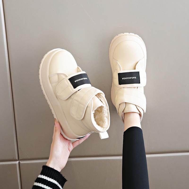 他她女孩雪地靴女冬女鞋魔术贴孕妇棉靴防滑34加绒加厚东北鞋子