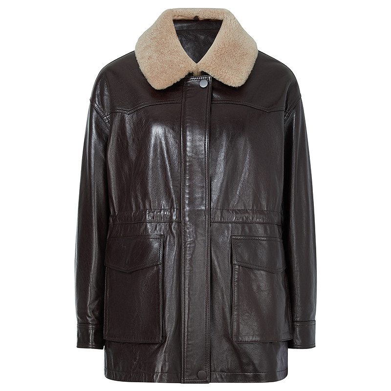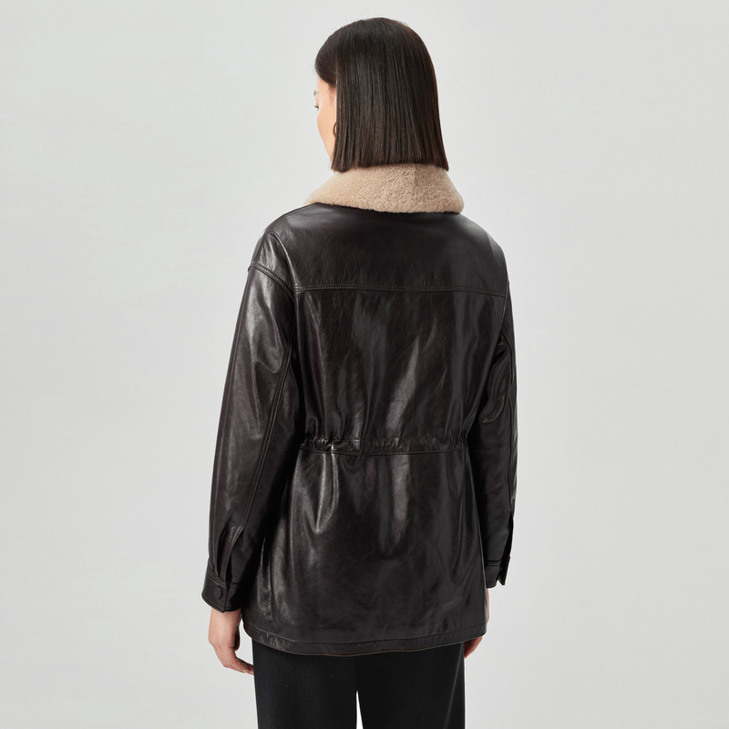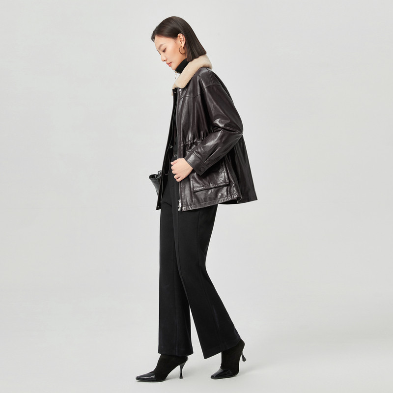 NAERSI娜尔思皮羽绒外套抽绳收腰显瘦毛领皮衣2025年冬季新款女