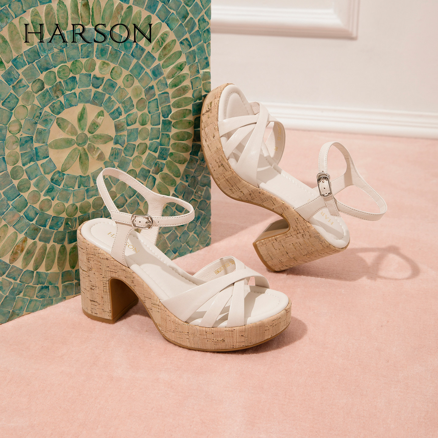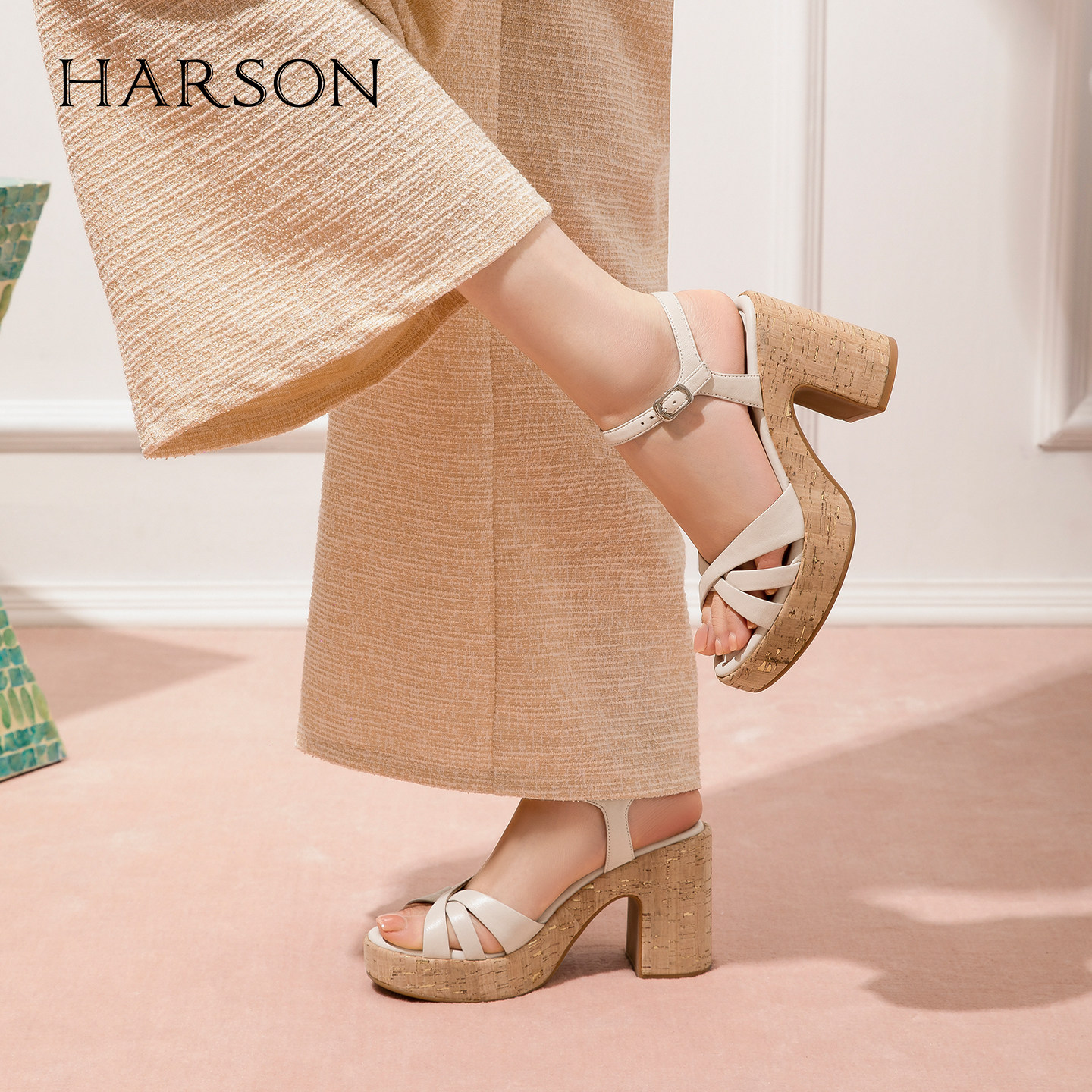 哈森时尚露趾一字带高跟凉鞋职场气质时装凉鞋2026夏新款HM267138