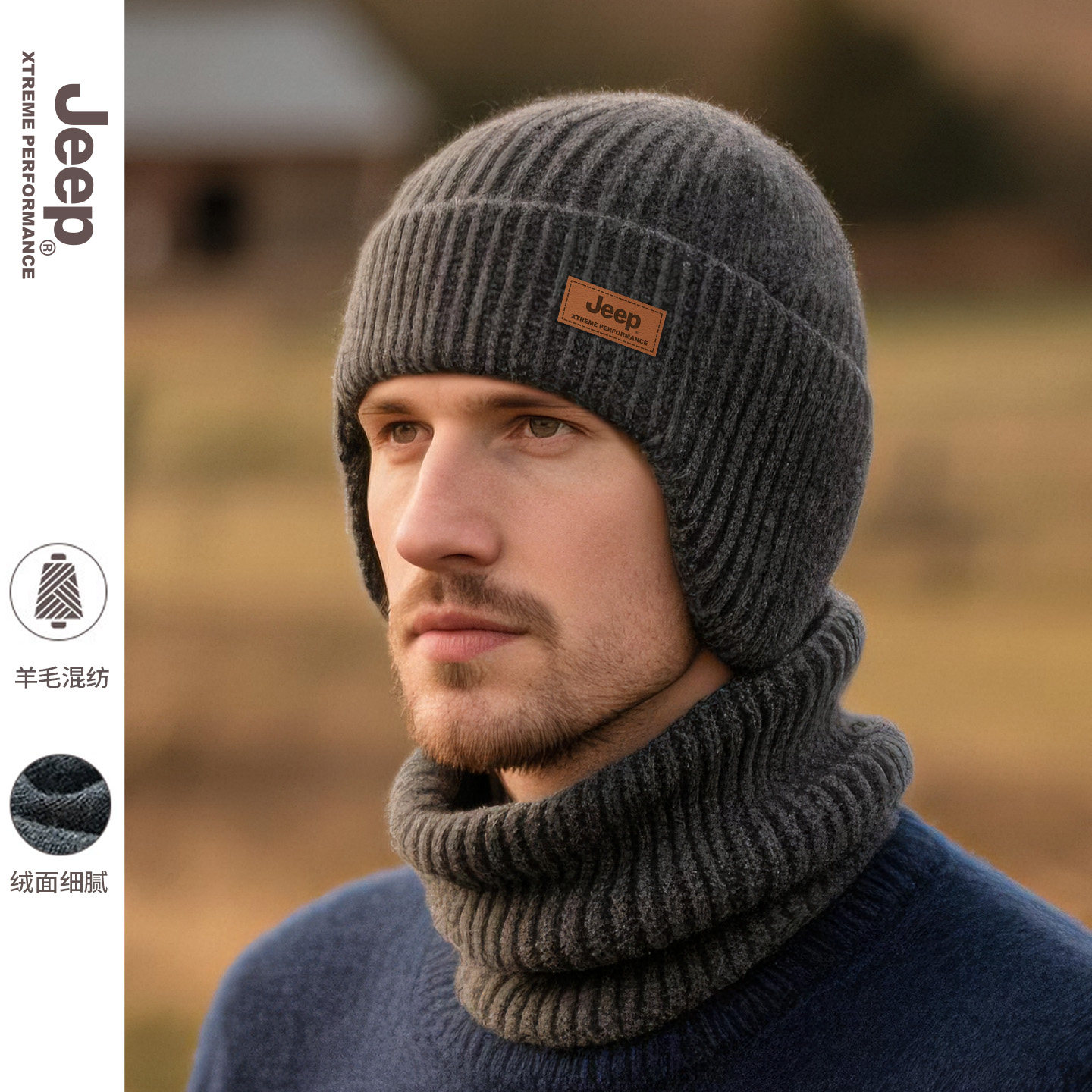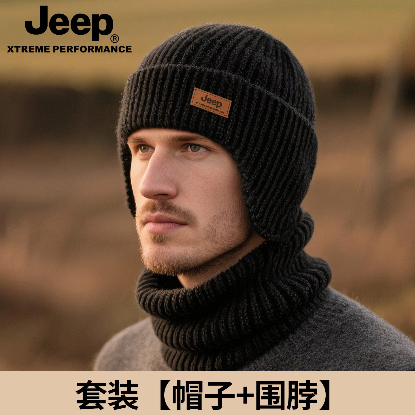 jeep吉普帽子男冬2025新款保暖针织帽加绒防风防寒冬季羊毛混纺帽