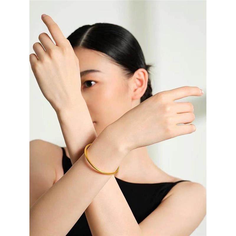 沙金手镯女古法黄金999素圈手环仿真金包银实心婚庆首饰品不掉色