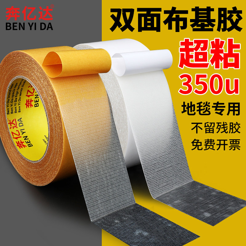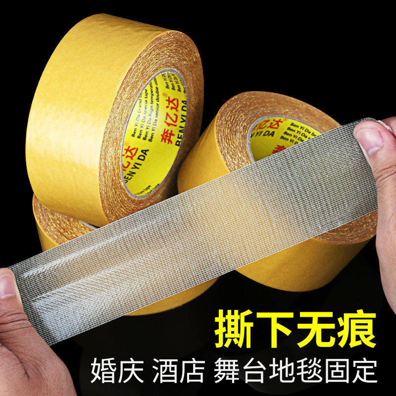 双面布基胶带强力网状布基双面胶婚庆会展地毯地板革拼接强力固定高粘度耐磨无痕大力胶网格双面胶布整箱批发