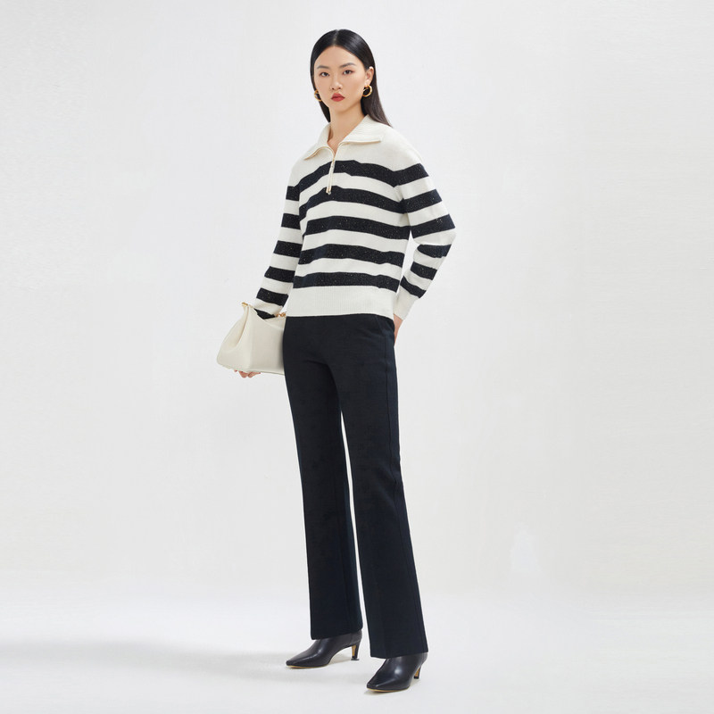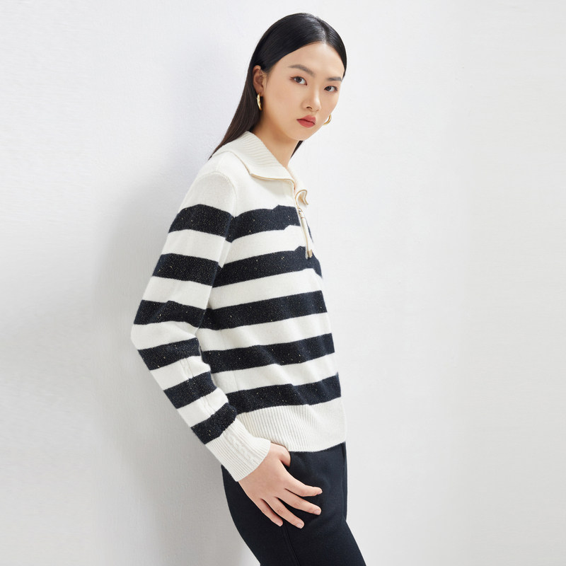 娜尔思羊毛羊绒混纺针织毛衫时尚翻领2025年冬季新款休闲时尚上衣