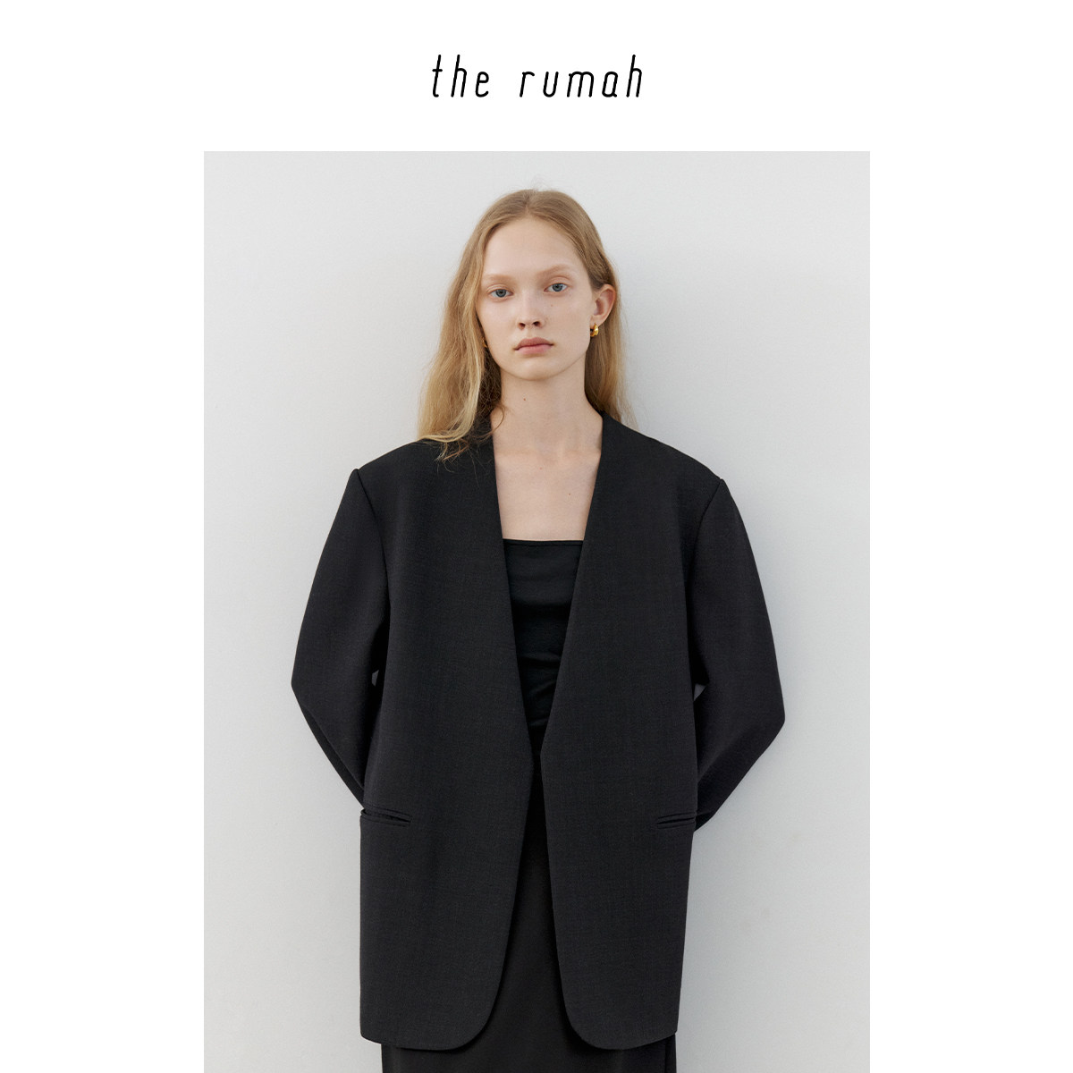 therumah无领西装外套 进口双层初剪羊毛袖口撞色外缝线休闲西装