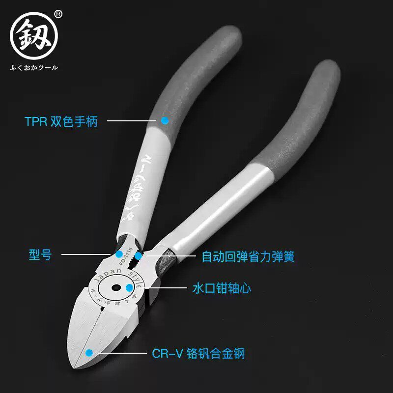 日本福冈水口钳钳子6寸偏口钳高达模型剪5寸小剪钳德国进口斜口钳