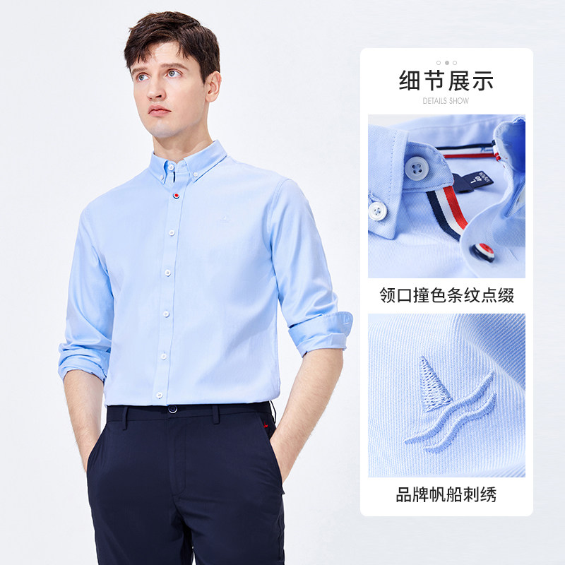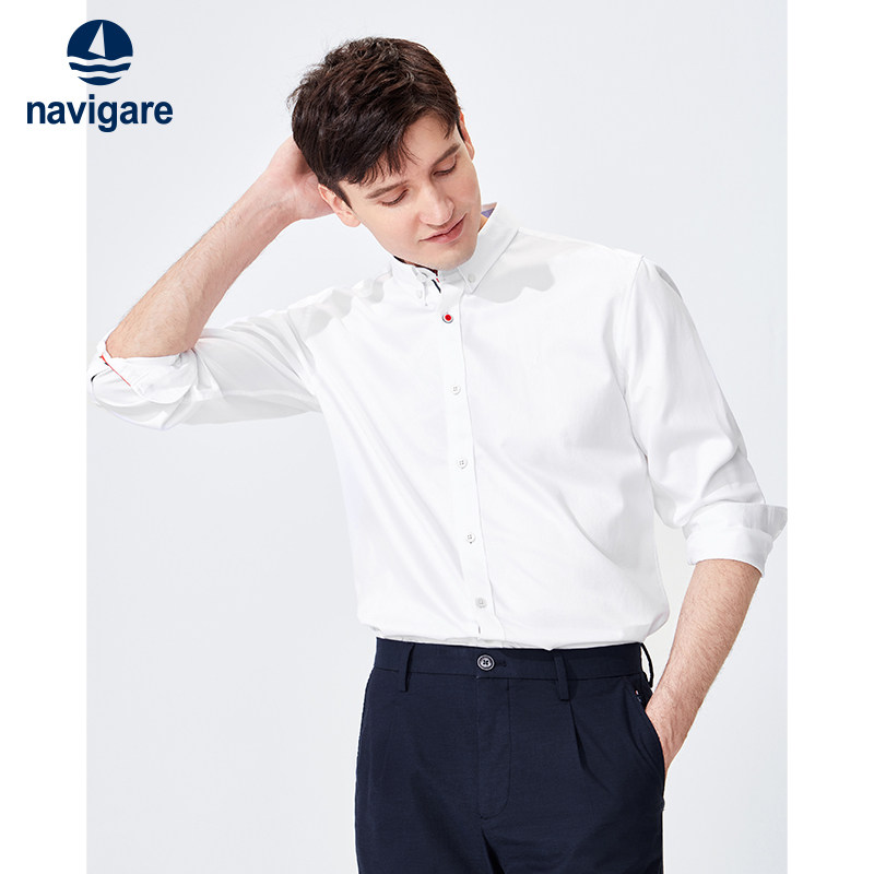 Navigare意大利小帆船蓝色长袖衬衣男2026春季商务休闲纯棉衬衫