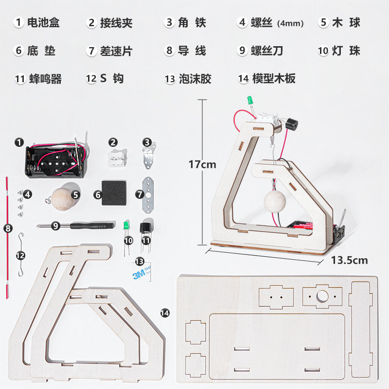 地震报警器地动山摇科学实验二通手工自制木科技小制作物理材料包