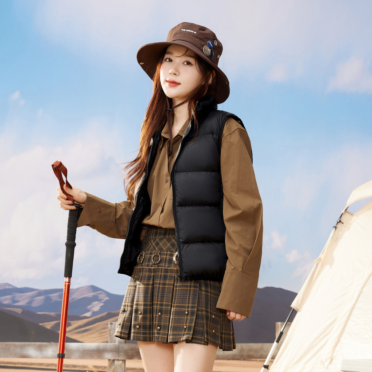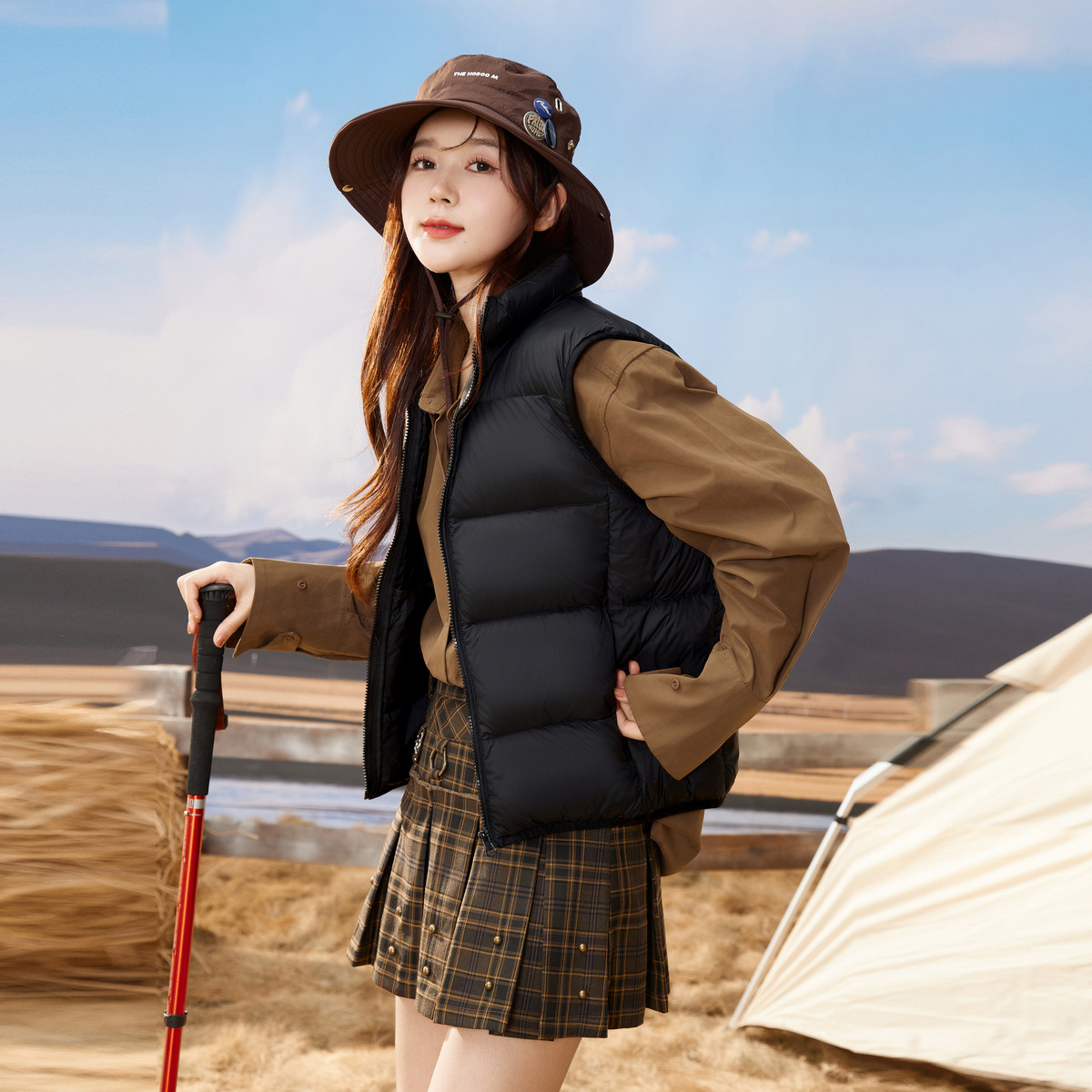 骆驼女装羽绒马甲2025秋冬新款白色轻薄短款外穿保暖背心男女外套