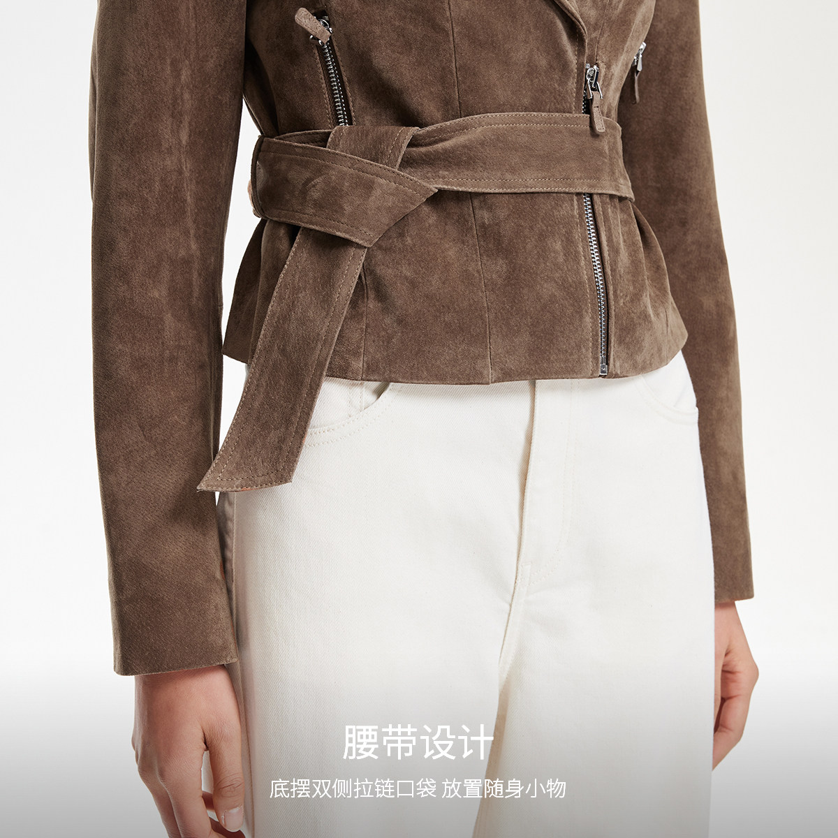 Vero Moda皮衣女2025夏季新款收腰系带个性猪剖层革皮衣325110007