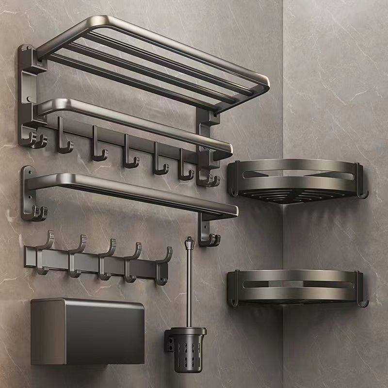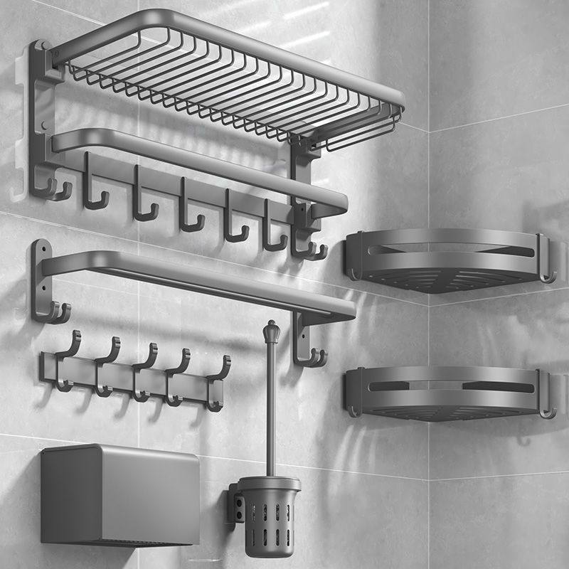 卫生间太空铝毛巾杆厕所置物架壁挂浴室卫浴枪灰色免打孔毛巾架