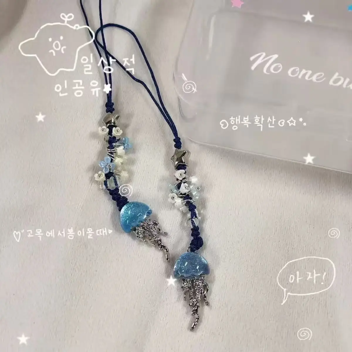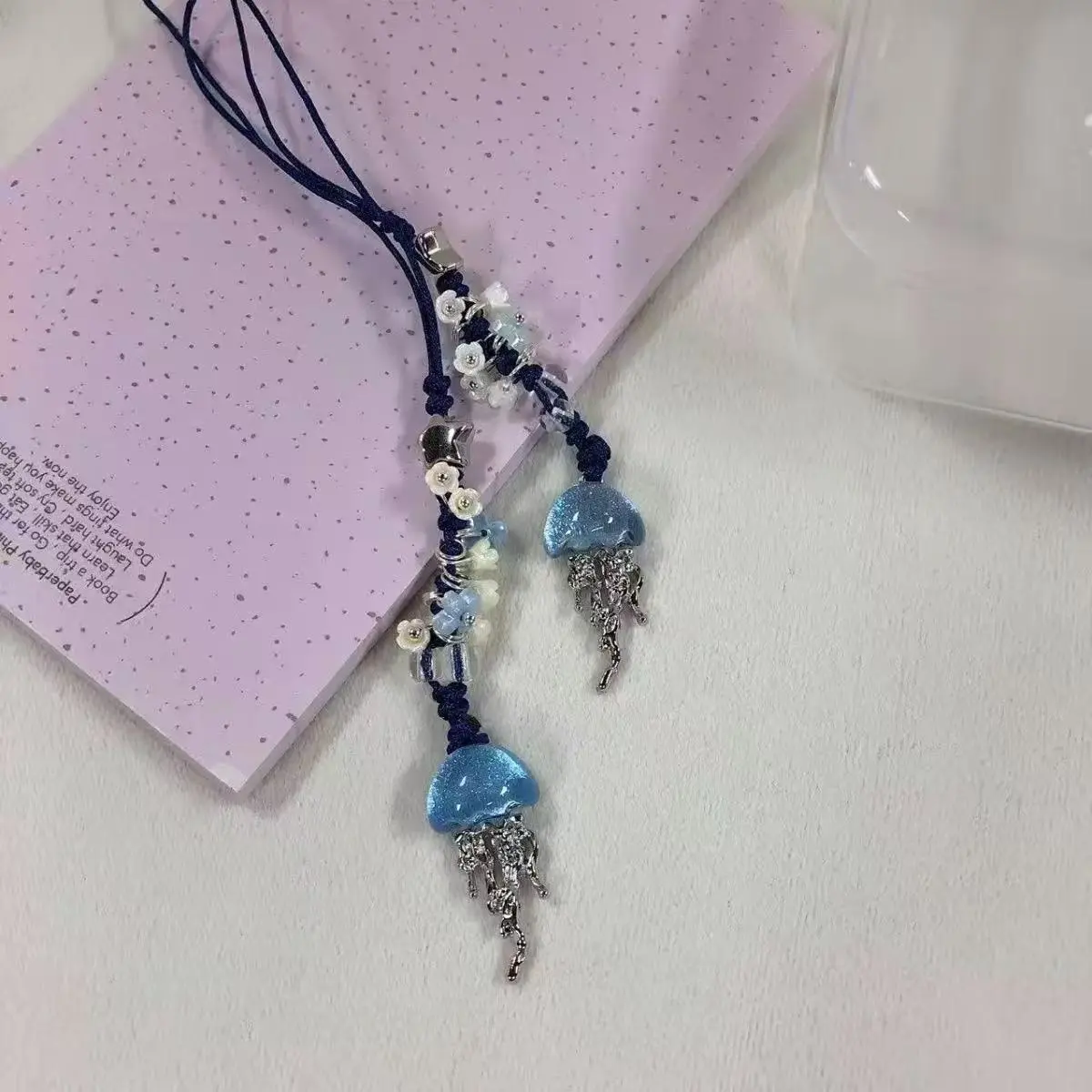 【海底精灵】原创精致简约水母花朵串珠挂饰包包相机挂件手机链
