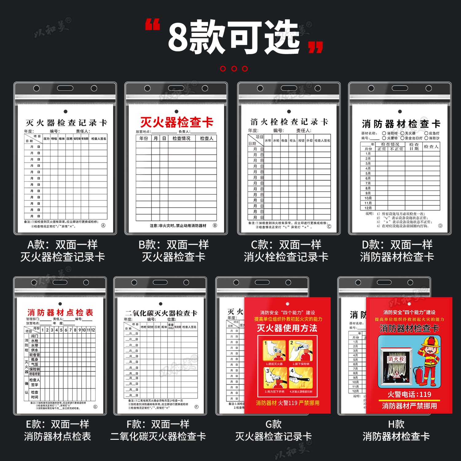 消防器材记录卡检查卡套安全检查表灭火器消火栓消防栓特厚记录表年检月检点检卡安全设备保养维护登记检验卡
