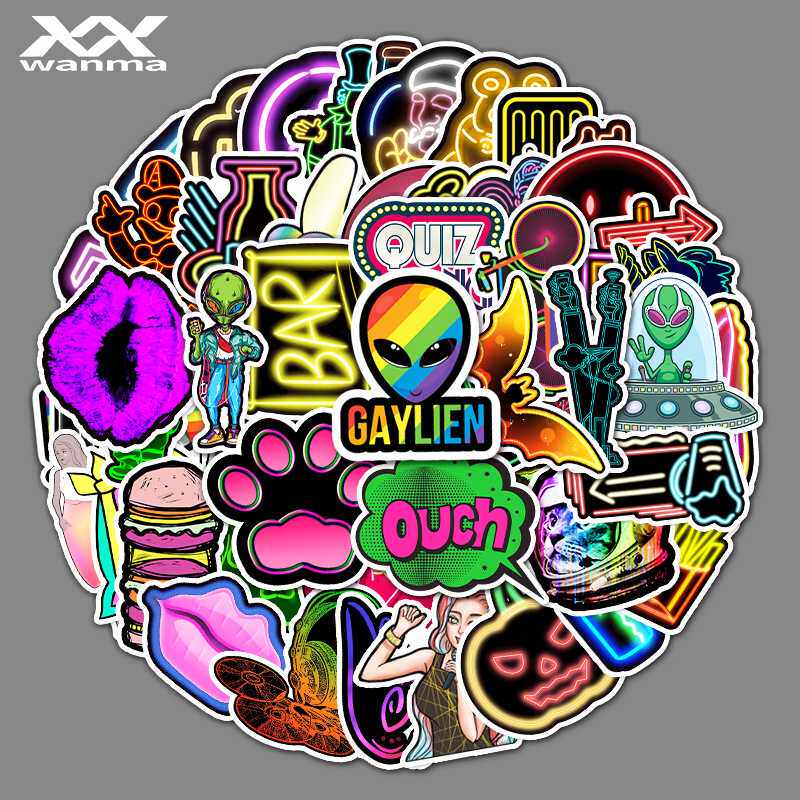 新款直销53张霓虹灯涂鸦装饰个性时尚笔记本行李箱摩托车汽车防水