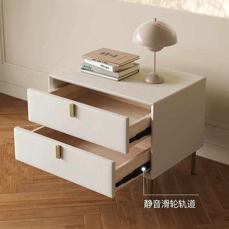 轻奢卧室全实木床头柜现代家用皮艺小储物柜ins风床边柜卧室收纳