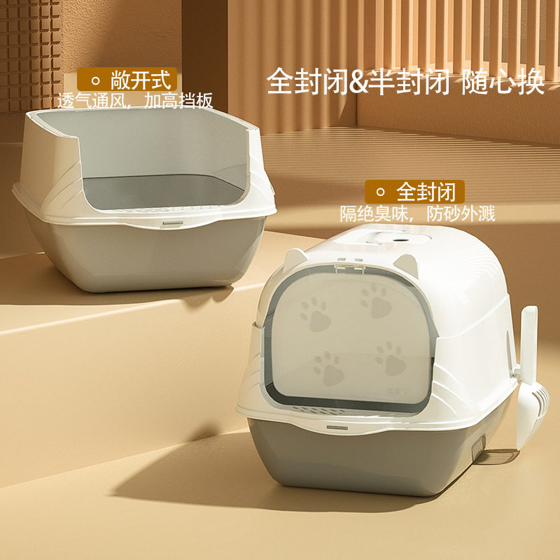 猫砂盆超大号防外溅全封闭猫厕所带提手幼猫隔臭猫屎盆现货批发