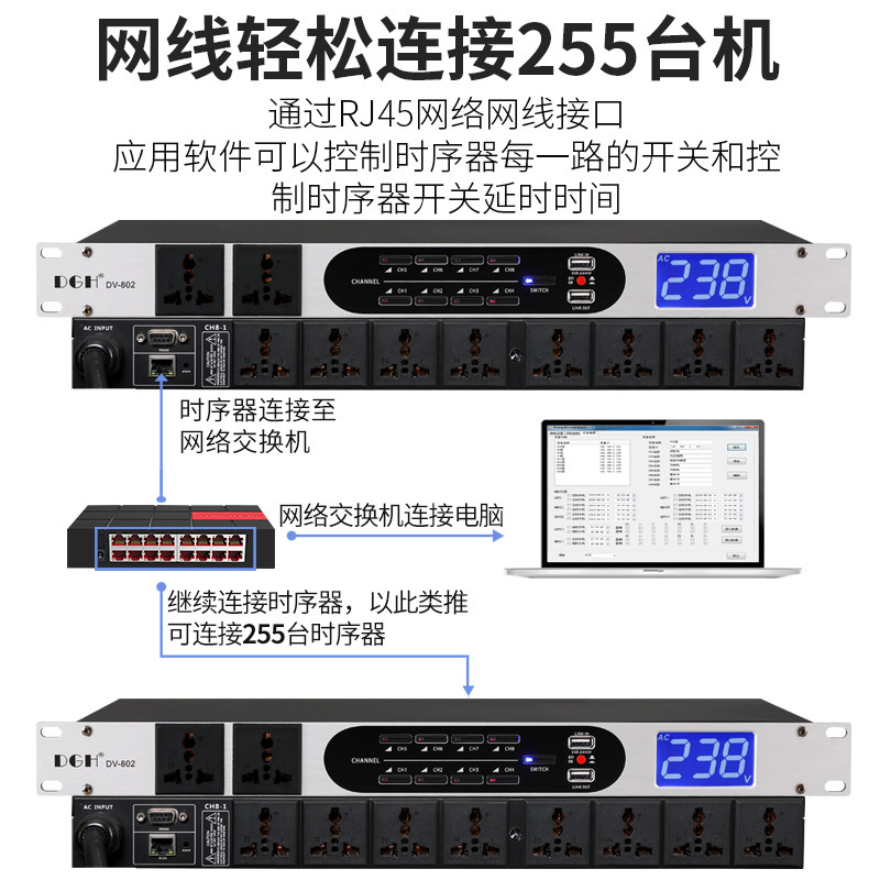 专业网络控制10路电源时序器8路顺序管理器电脑中控RS232串口