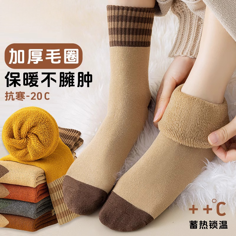 袜子女款秋冬季加厚加绒保暖羊毛长筒袜冬季毛圈棉袜毛巾底中筒袜
