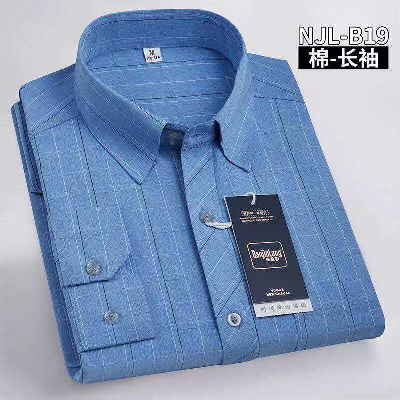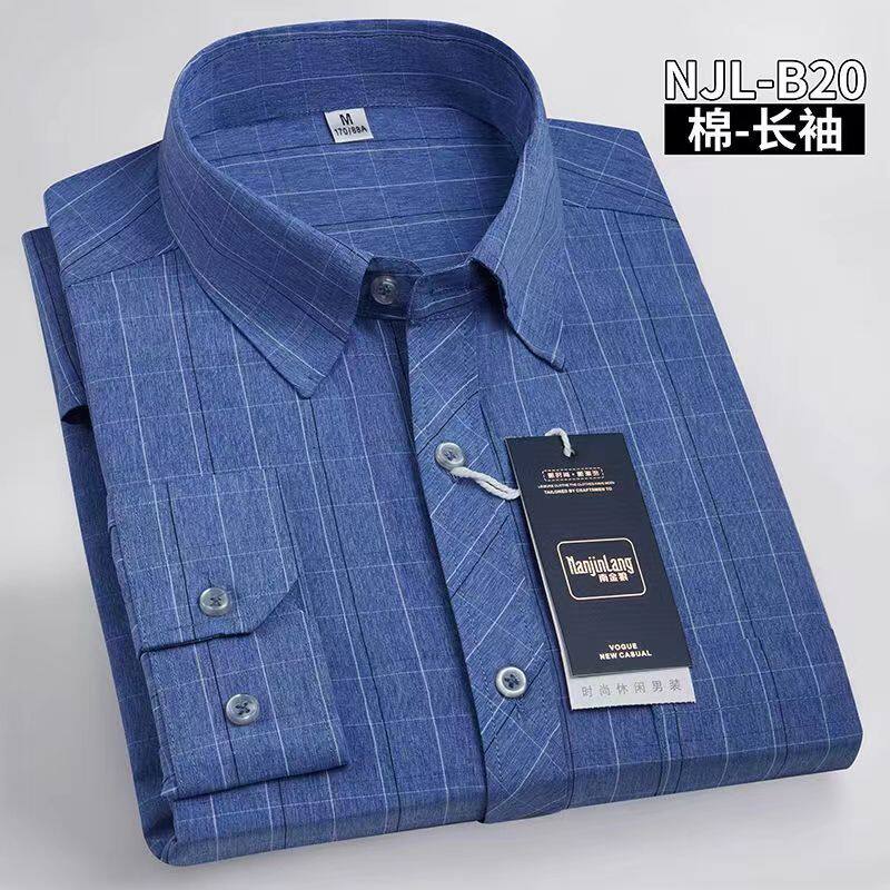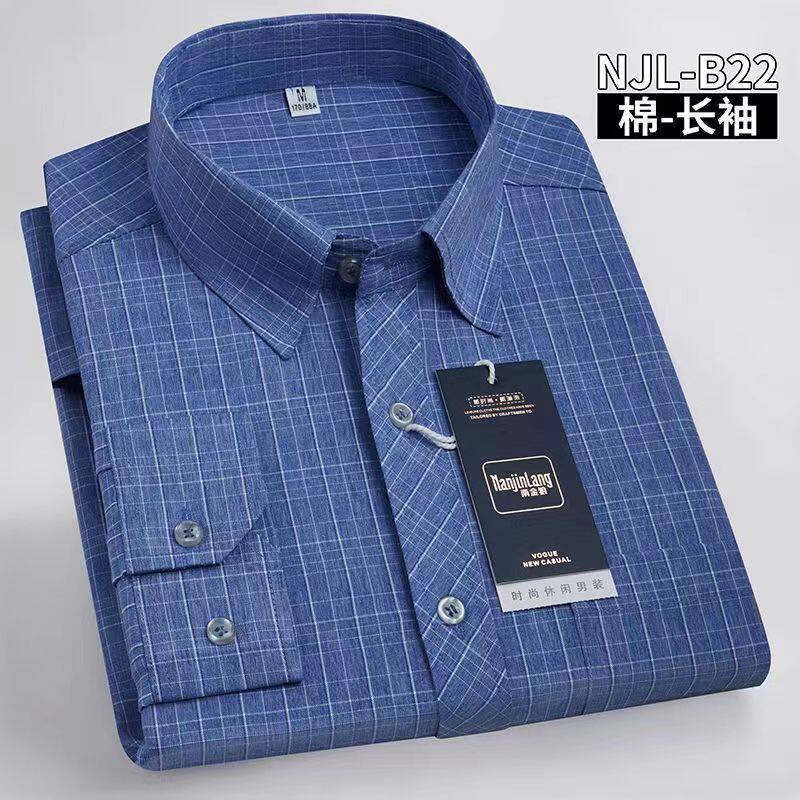 【清仓特价】纯棉男士长袖格子衬衫休闲商务爸爸装全棉有口袋衬衣