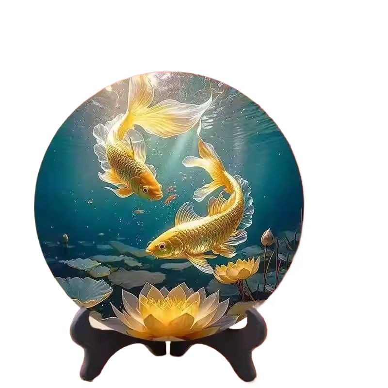 锦鲤圆盘招财摆件年年有余装饰品旺宅玄关客厅摆件家居饰品摆件