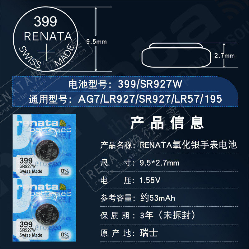 RENATA瑞士399手表电池SR927W通用D395 SR57