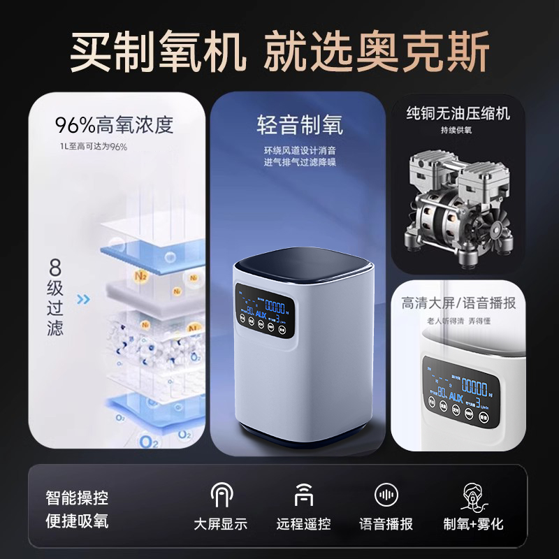 奥克斯制氧机家庭用孕妇轻音氧气机便携式车载雾化吸氧礼物