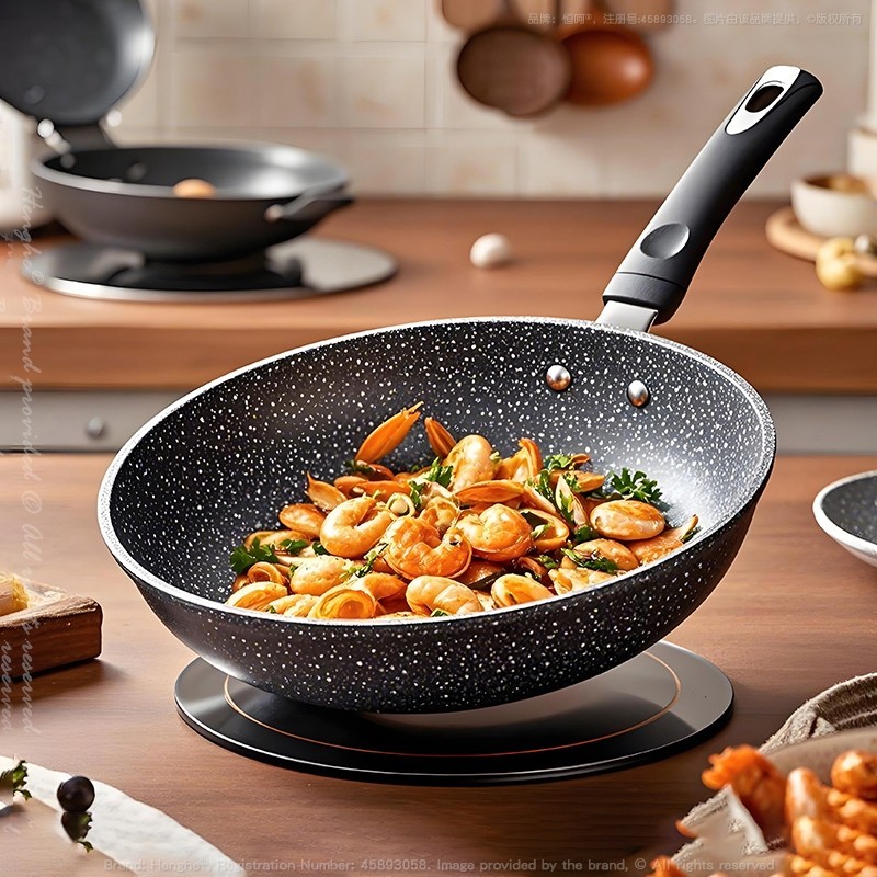 麦饭石炒锅不粘锅家用平底锅电磁炉燃气灶通用锅具锅具煎锅煎蛋锅