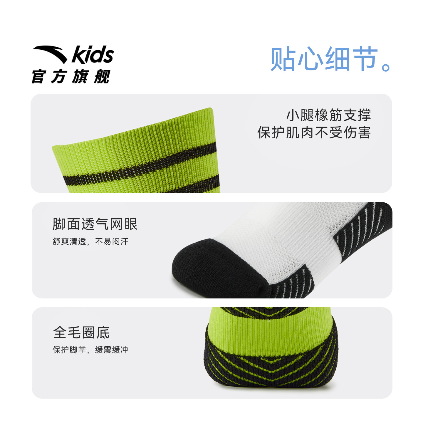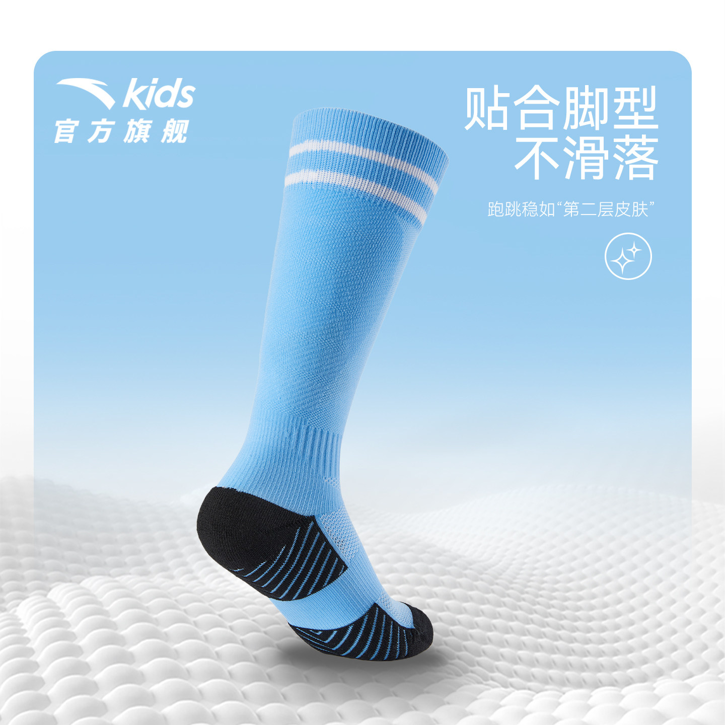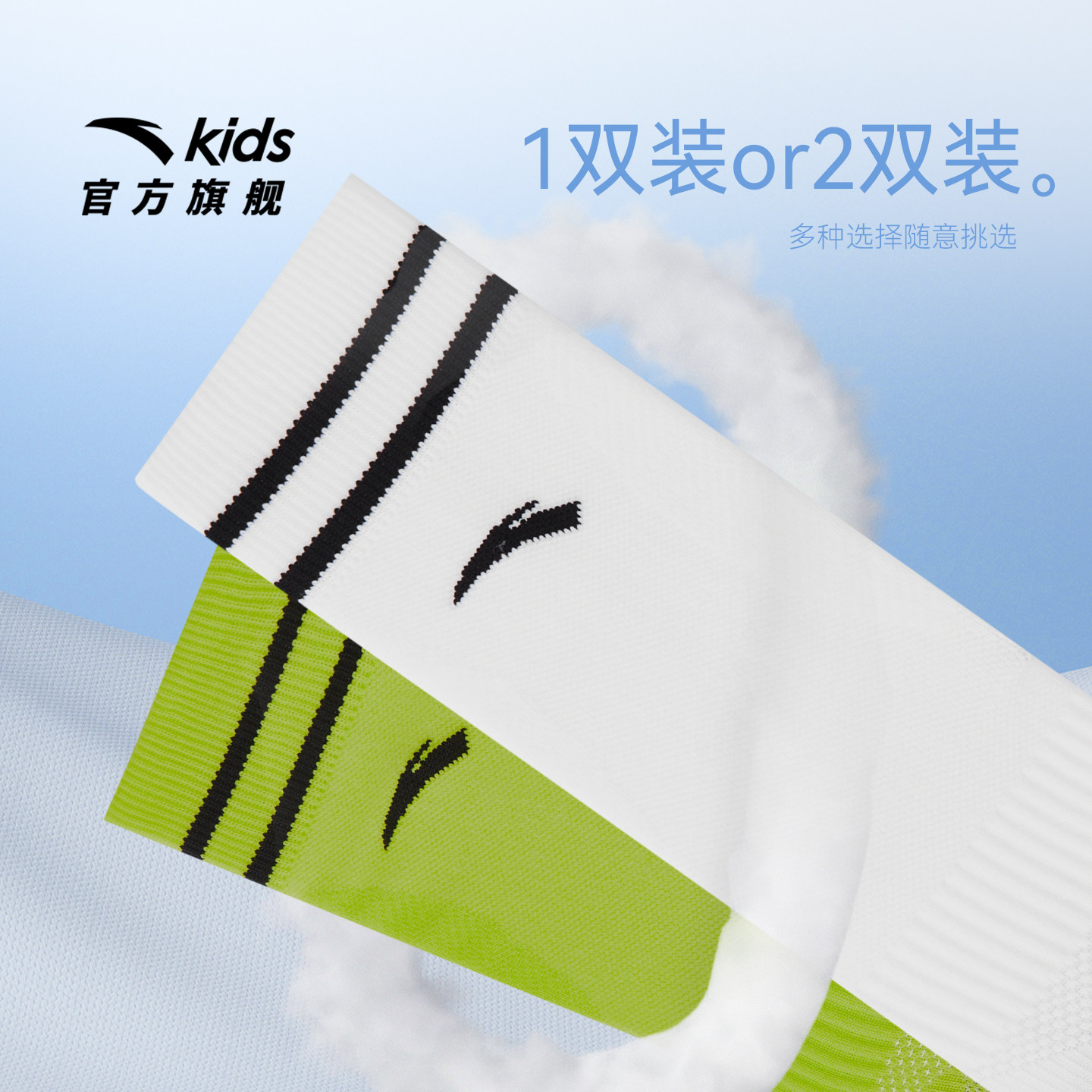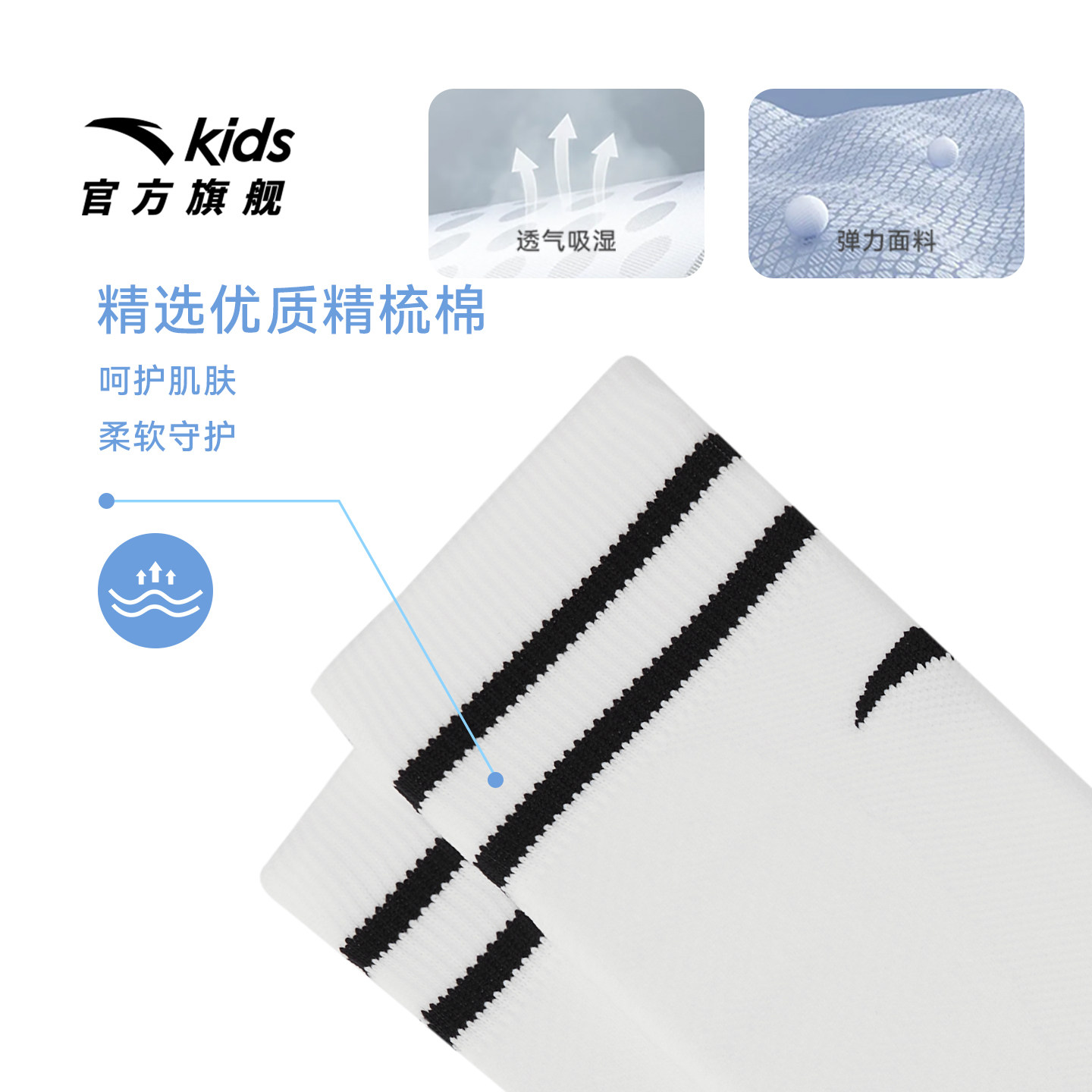 安踏儿童袜子男童长袜两双装2025款舒适运动抗菌透气足球袜精梳棉
