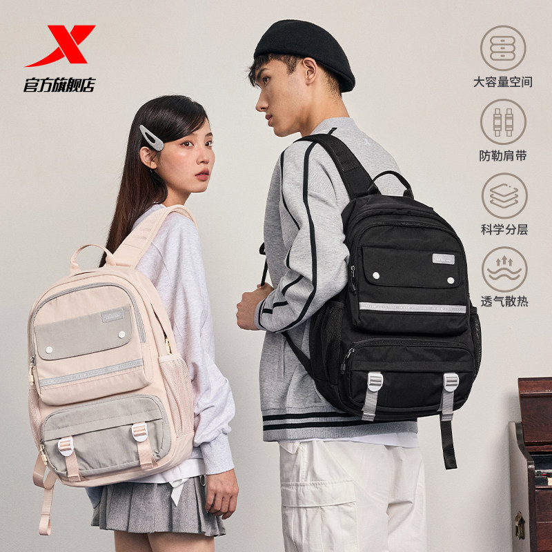 特步书包初中女生2025秋季大容量轻便男双肩徒步背包情侣款电脑包