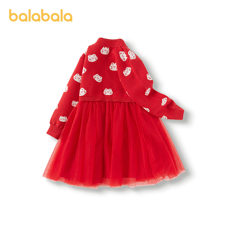 巴拉巴拉balaOne童装女公主裙2025秋冬新款儿童连衣裙针织网纱裙