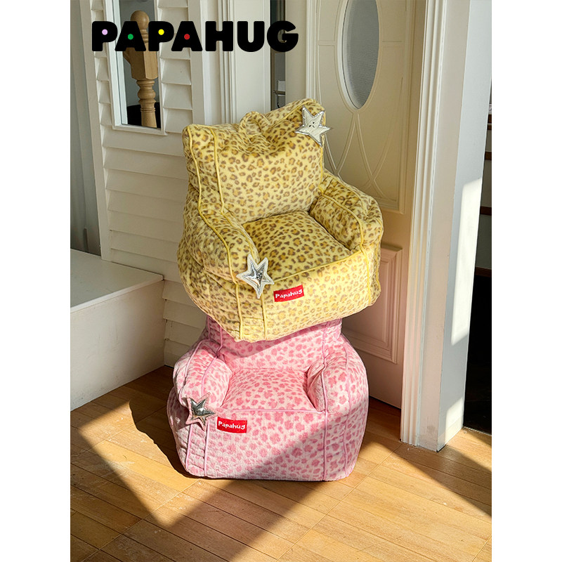 PAPAHUG 甜酷豹纹沙发卧室小沙发单人沙发客厅儿童懒人沙发椅躺椅