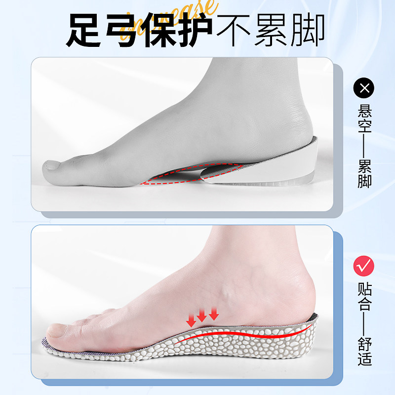 足弓支撑增高鞋垫增高鞋垫男女不累脚软弹隐形内增高七分半增高垫