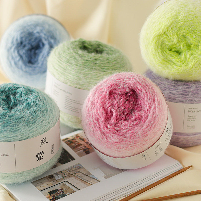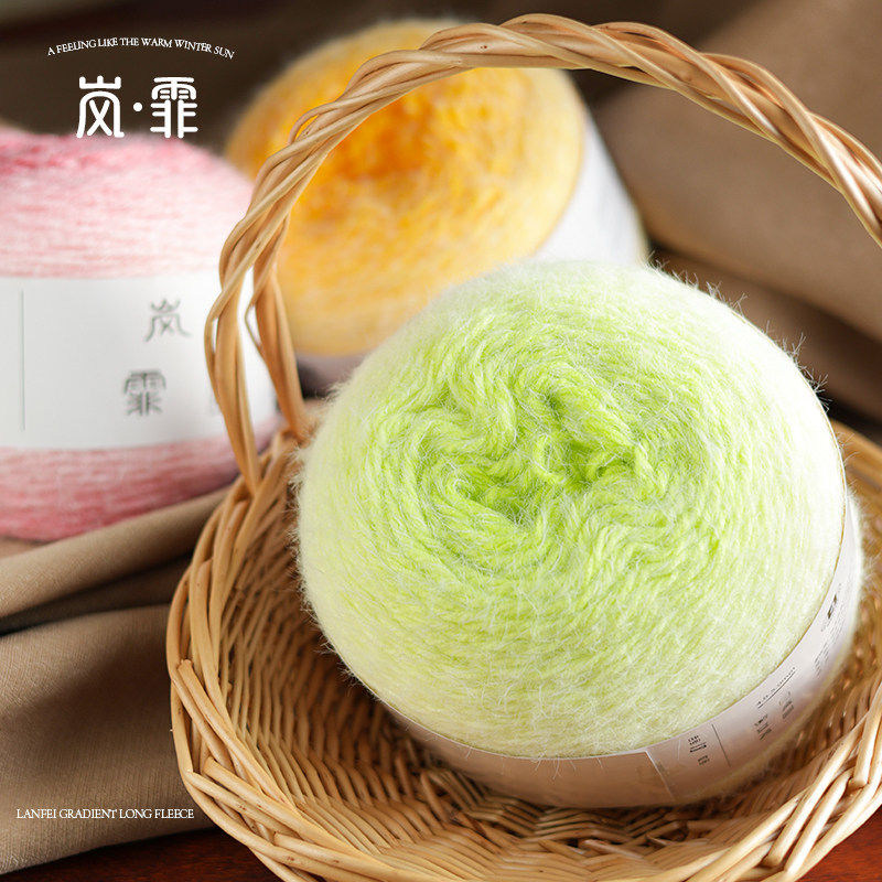 岚霏渐变长绒羽毛线七星毯渐变羊毛diy手工编织围巾花束毯子毛线