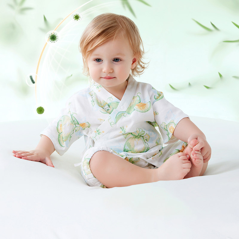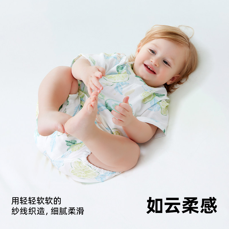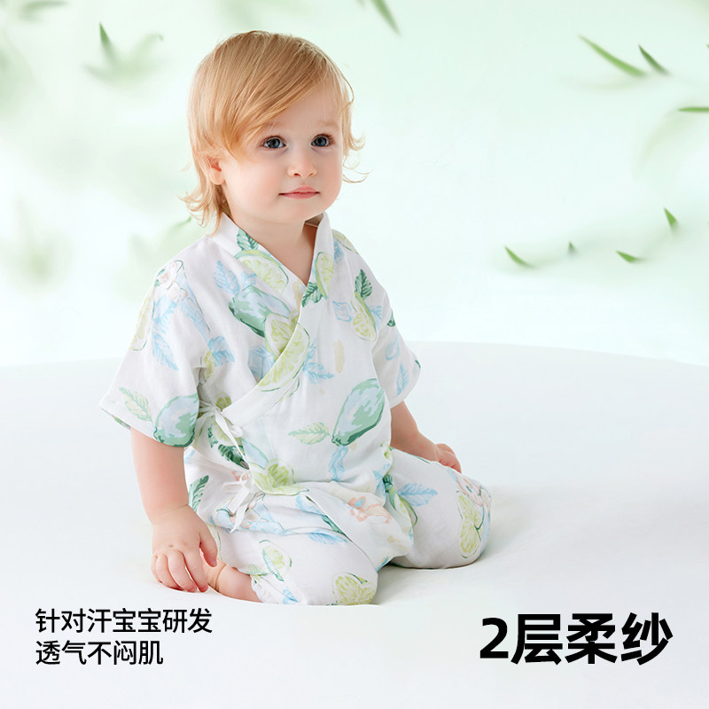 贝肽斯婴儿衣服竹棉纱布连体衣夏季薄款宝宝透气短袖新生儿睡衣