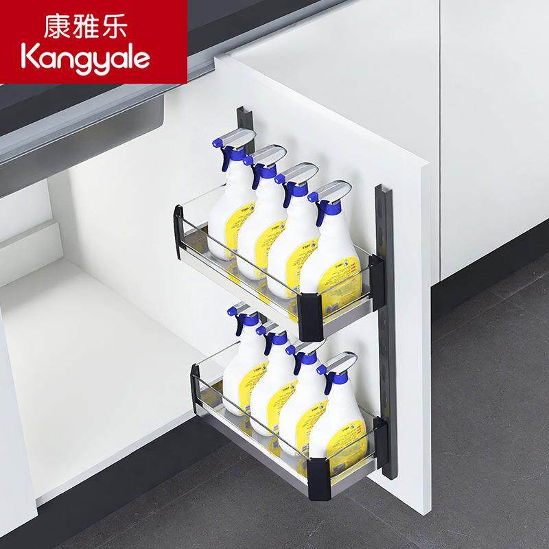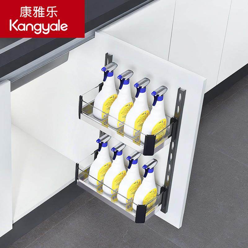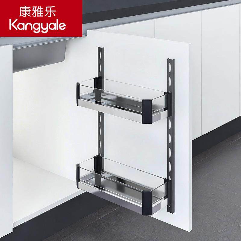 康雅乐玻璃铝合金橱柜门板拉篮厨房浅柜水槽收纳双层开门调料挂篮