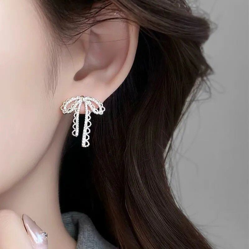 丝带蝴蝶结耳钉小红书同款网红丝带后挂设计感个性冷淡风耳饰女